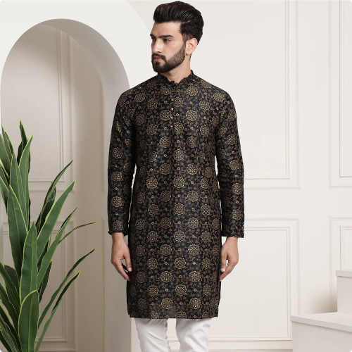 Our kurtas are crafted from premium fabrics like silk, cotton, linen, and blended materials. Each product description clearly mentions the fabric used.